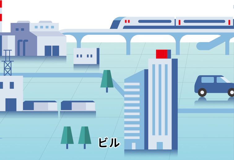 エレベーターの監視制御から、ビル全体の設備監視・制御システム、空調管理まで、人々に最適な環境を提供し、快適で働きやすいスマートビルを実現しています。