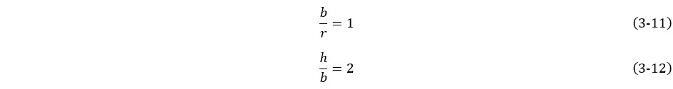 hは樹木の高さ、bは樹幹部の鉛直方向の半径、rは水平方向の半径であり、MODISでは以下のように定義される。