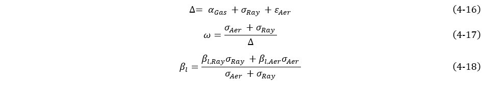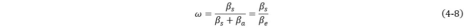単一散乱アルベドは(4-8)式のようにあらわされ、エアロソルによる吸収+散乱における散乱の割合を示す。