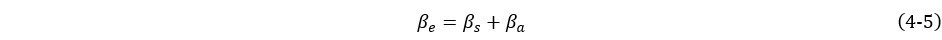 消散係数は吸収係数と散乱係数の和であり、(4-5)式のようにあらわされ、媒質の内部を伝搬する放射は、複素屈折率の実部、虚部が0ではない一様な媒質の中で、吸収及び散乱される。