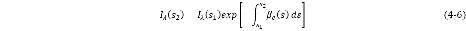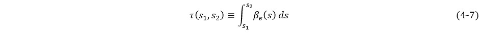 消散係数βeを使用すると、点s1とs2 (s2≥s1)の間の消散は以下のようにあらわされる。