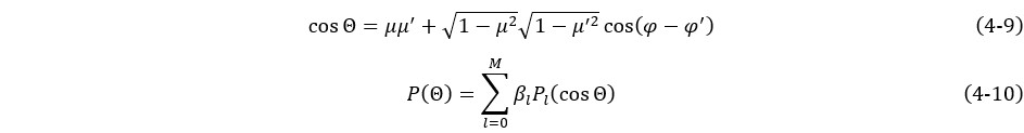 位相関数は散乱角と入射角の間の散乱角Θにのみ依存し、ルジャンドル多項式に展開することができる。
